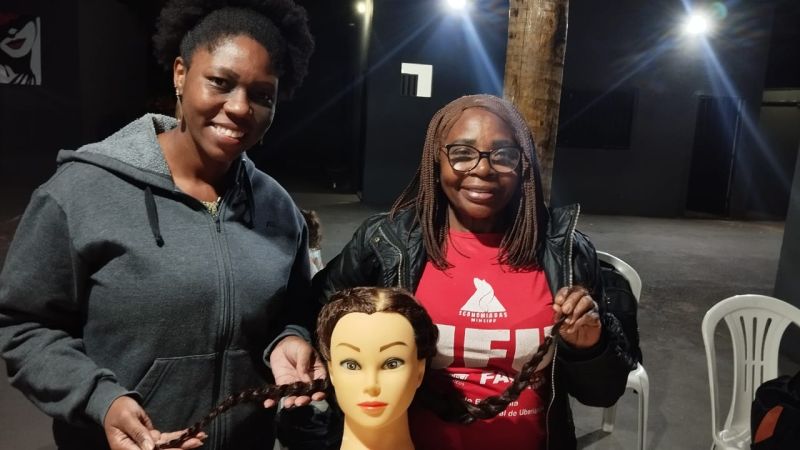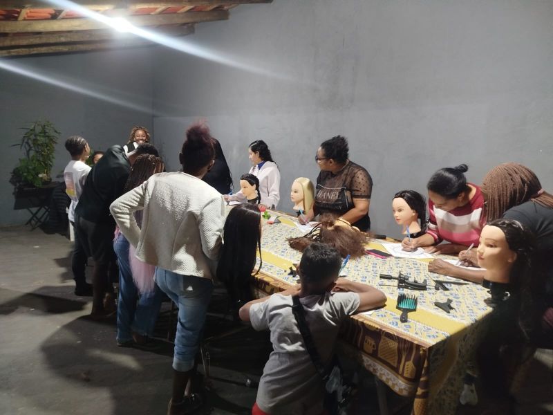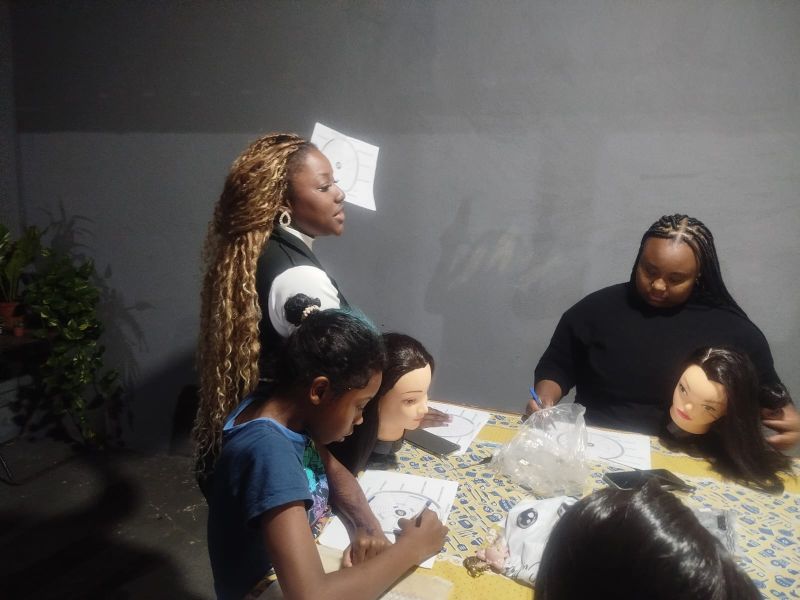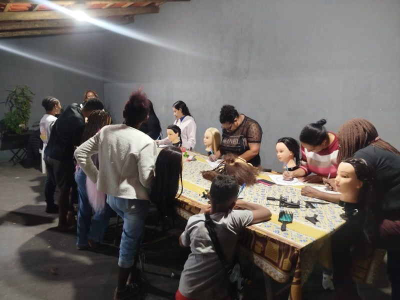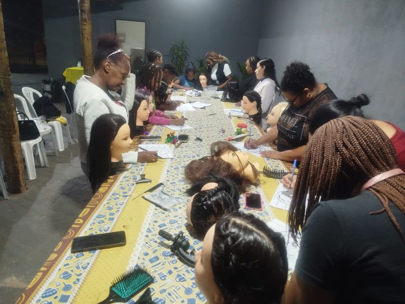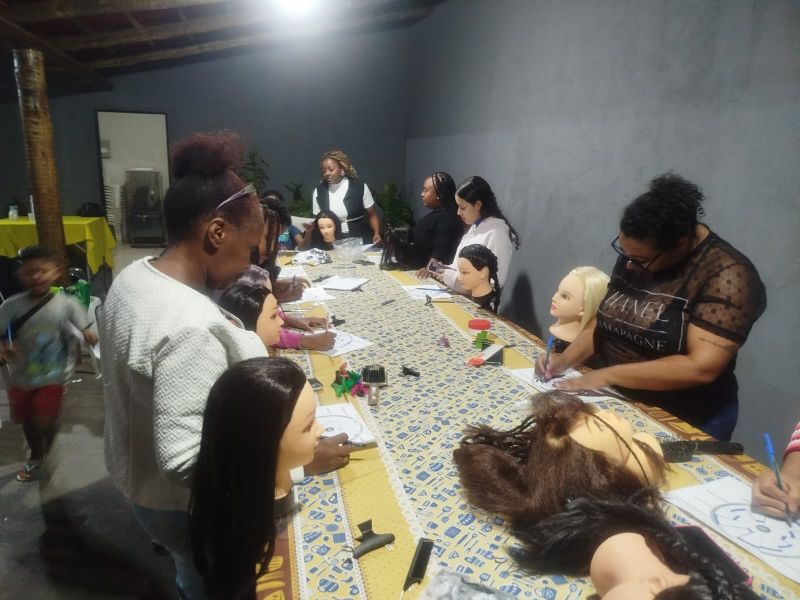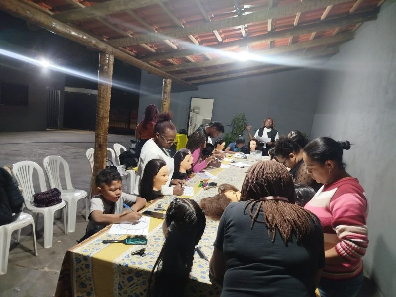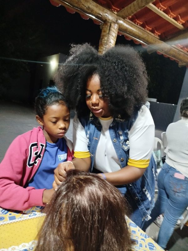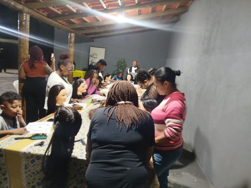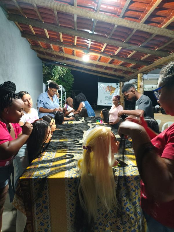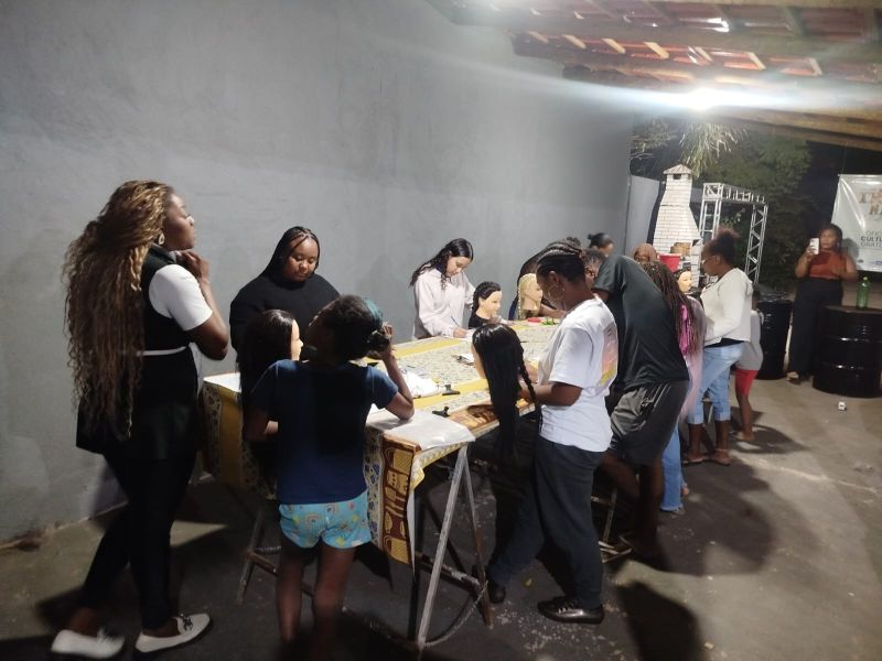 Com mãos que entrelaçam fios e saberes, cada trança é uma narrativa viva de identidade, resistência e pertencimento. A oficina promove não apenas o aprendizado estético, mas também a valorização de práticas culturais afro-brasileiras que atravessam gerações.