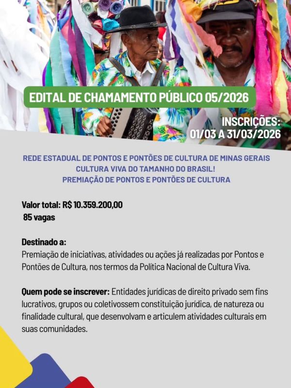 O conjunto de editais contempla bolsas, premiações e fomento a projetos em diversas linguagens artísticas, valoriza a cultura popular afromineira, fortalece a Rede Cultura Viva e estabelece um marco histórico: a criação de uma linha exclusiva e inédita de fomento voltada aos povos indígenas, reafirmando o compromisso com a diversidade, a ancestralidade e os saberes tradicionais.