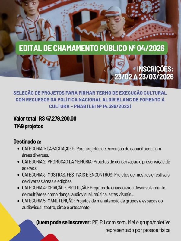 A Política Nacional Aldir Blanc ( PNAB) segue fortalecendo a cultura em Minas Gerais com um investimento histórico de R$ 100,7 milhões, que se traduz em 2.996 oportunidades destinadas a agentes culturais, grupos, coletivos e instituições de todo o estado.