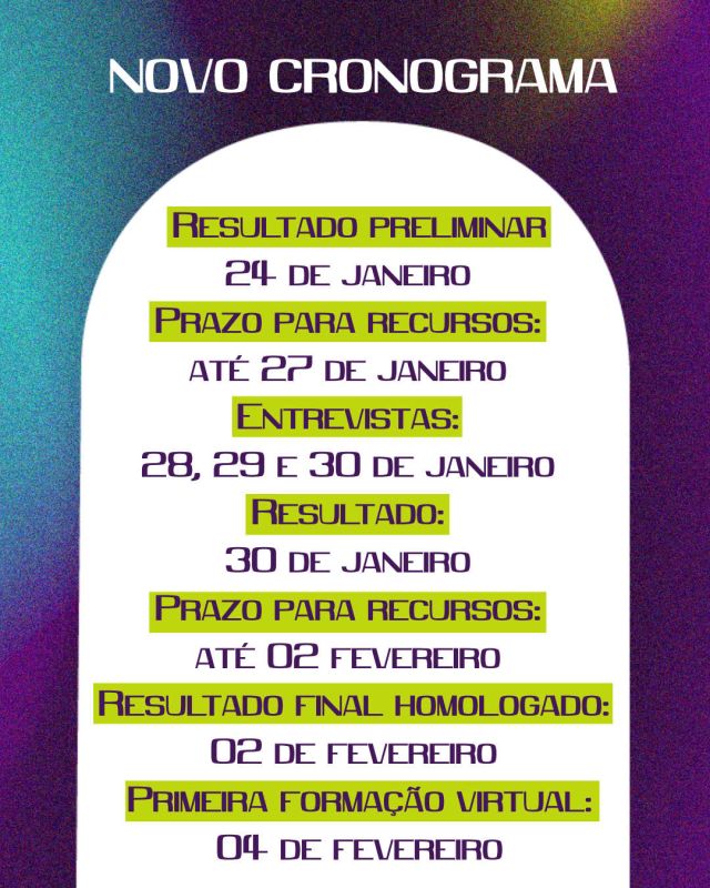 Junto ao resultado, divulgamos também o novo cronograma do edital, com as próximas etapas do processo seletivo: